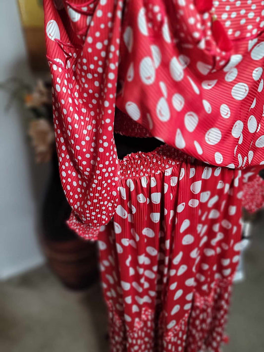 Sold outRed With White Polka Dot Skirt Set